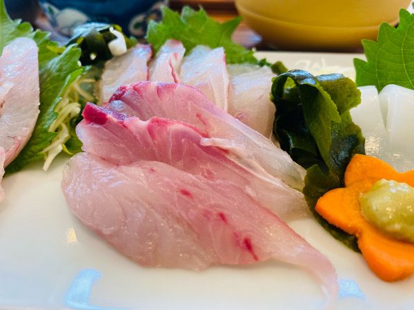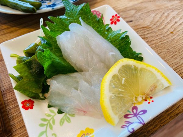 さらにカワハギの煮付けとお刺身まで! 煮付けは生姜がアクセントになっていて、カワハギの身はほろりと柔らかく本当に美味しかったです。 お刺身はレモンをさっとかけていただきました。 「今朝獲れたカワハギなんです。日によっては魚が獲れないこともあるので、その場合は漬け丼などの提供に変わることもあります。事前にお電話でお問い合わせいただくのが確実です」とオーナーの河辺(かわべ)さん。