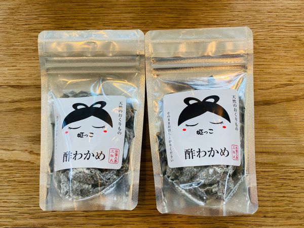 「酢わかめ」は、酢昆布のわかめバージョンといった感じ。程よい酸っぱさとシャキシャキした食感がたまりません。 おやつやお酒のつまみにもおすすめです! これらの商品は、カフェ姫っこの斜め前にある「さんしゃまる姫っこ」や大島フェリーターミナル内のお土産コーナーでも購入可能です。