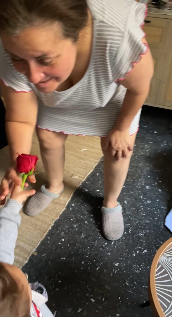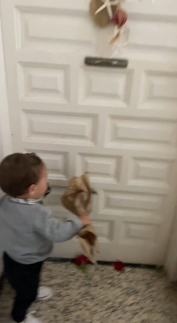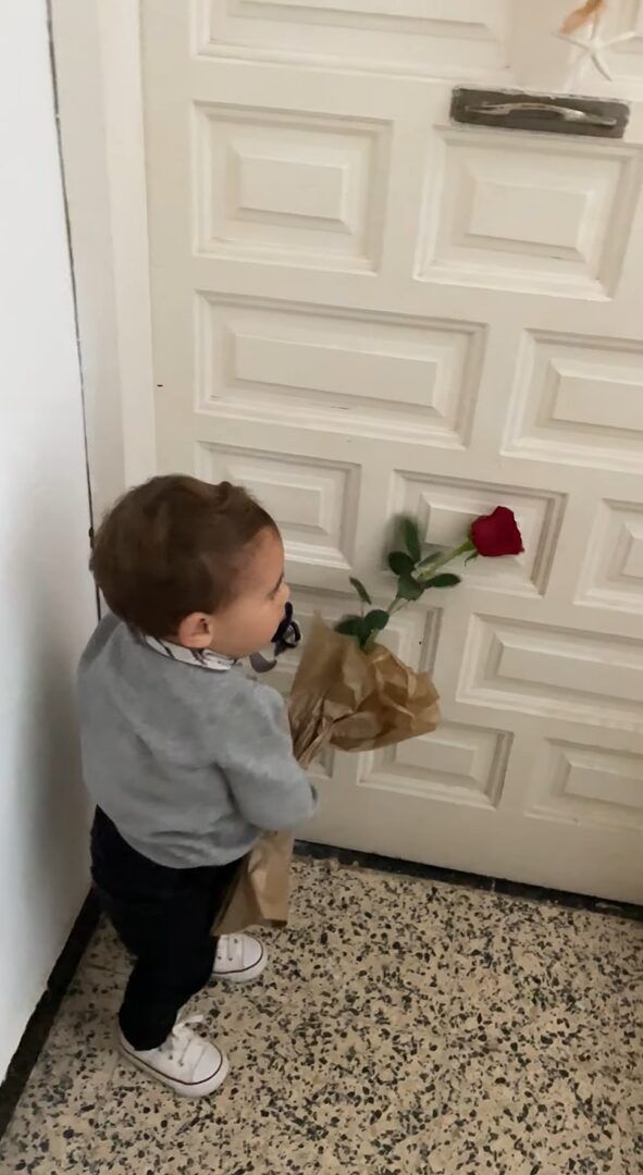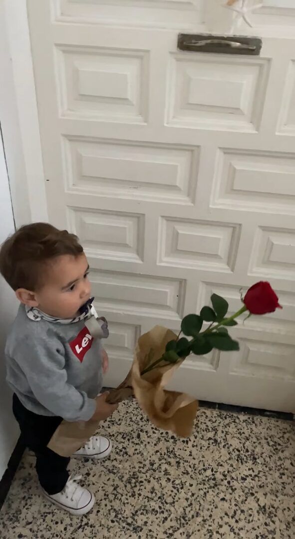 記念日におばあちゃんにバラの花をプレゼントしに来た、1歳半の男の子。 ですが、キレイなバラの花でドアをノックしてしまいました!