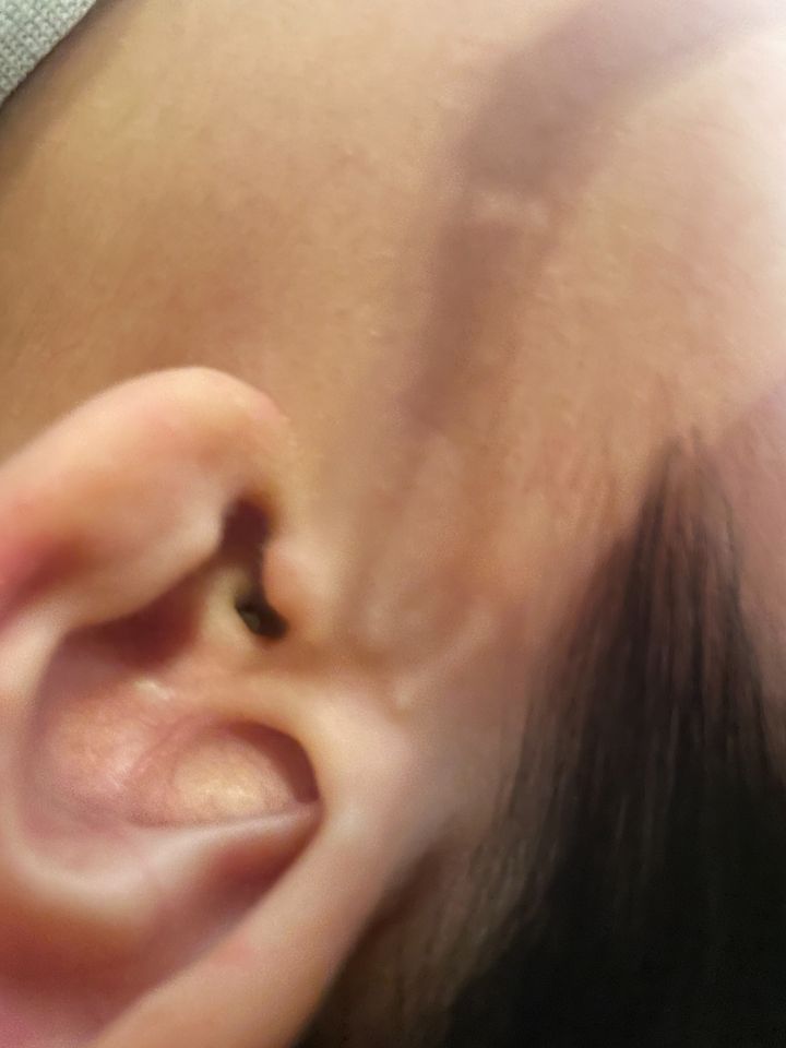 耳を携帯のライトで照らして確認するも目視出来ない。