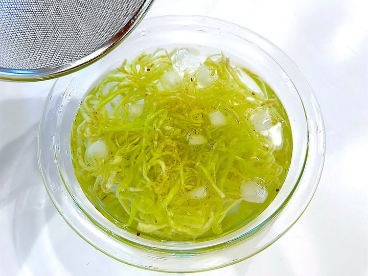 4. ザルなどで水気を切ったら器に盛り、みょうがなどの薬味をのせ、めんつゆをかければ完成!