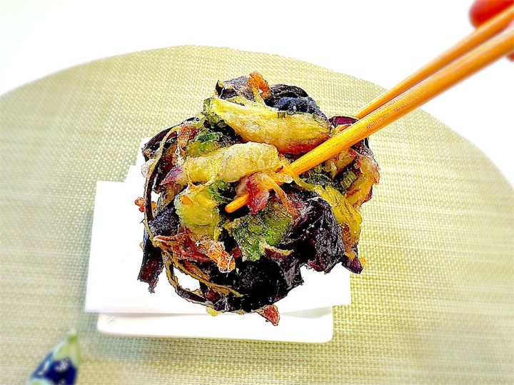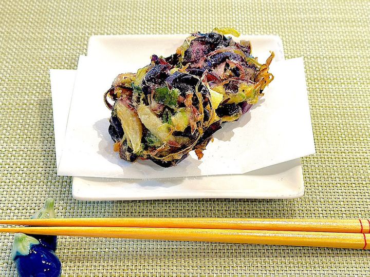 そして、1で剥いたなすの皮で…かき揚げを作りました!