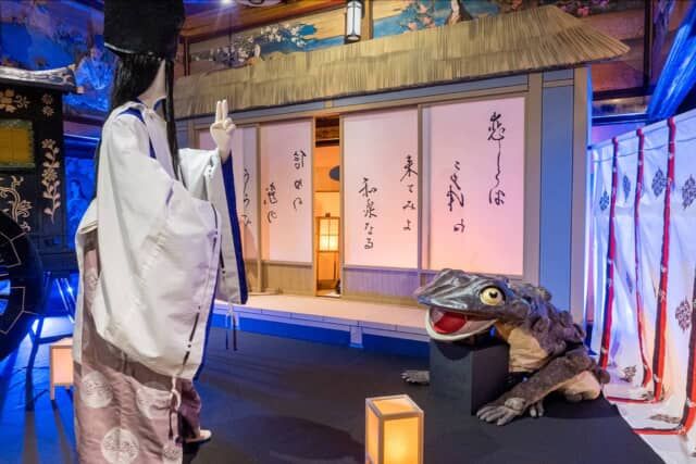 NHK大河ドラマ『光る君へ』にも登場する安倍晴明の誕生秘話で歌舞伎の演目としても知られる『葛の葉』の一場面。人間の父と白狐の “葛の葉“ を母にもつ安倍晴明が、長じて呪文でカエルを殺すシーンも描かれます。