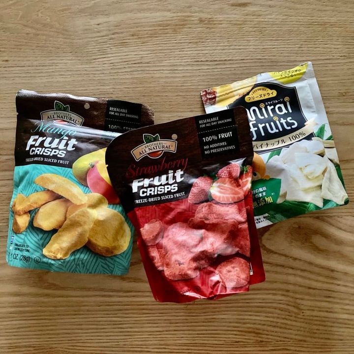 iHerbで購入したマンゴーといちごのフリーズドライ「Fruit CRISPS」、赤ちゃん本舗などで買える「ミライフルーツ」はいちごとバナナとパイナップルがあり