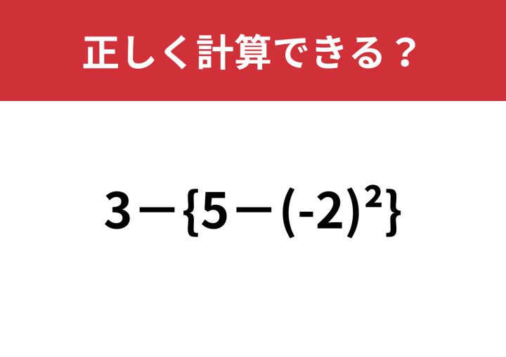 正解できたら自慢できるレベルの難問!?「3−{5−(-2)²}}」正しく計算できる?