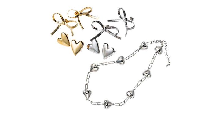 大人がつけても甘くなりすぎないハンサムなハートとリボンのピアスが2 種類セットに。真夏に多くなるシンプル服を今っぽく。どちらも真鍮。