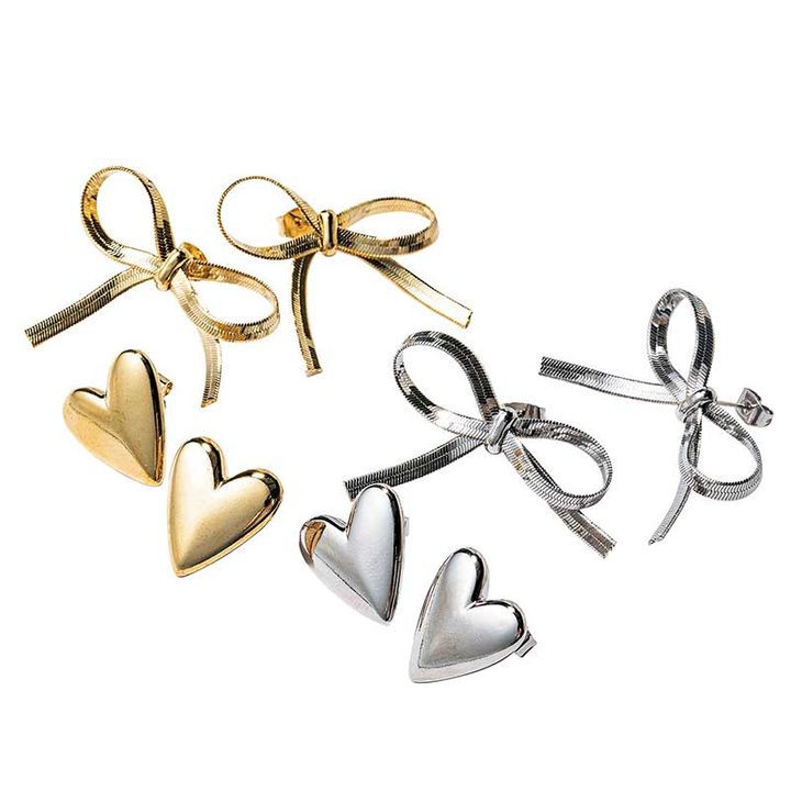 VS Selection リボン&ハートピアス2種セット シルバー、ゴールド Price_¥6,820
