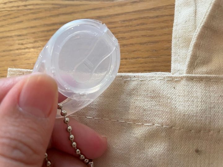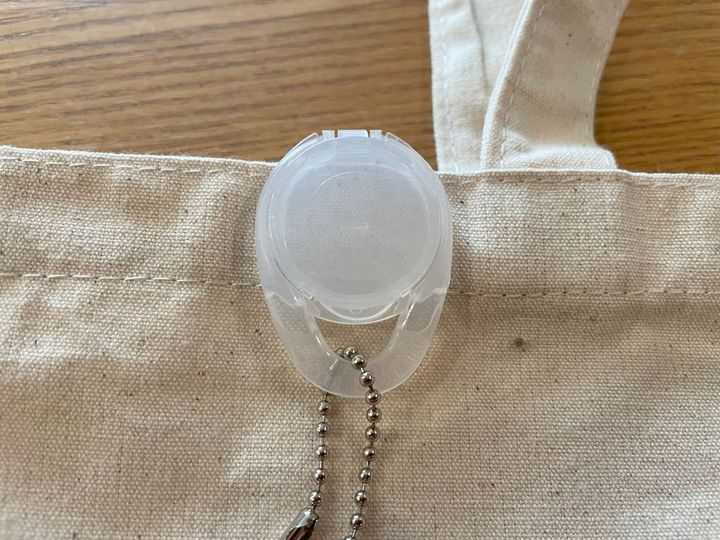 チェーンと、クリップがついているので、使いやすい方法で持ち運ぶといいですね。