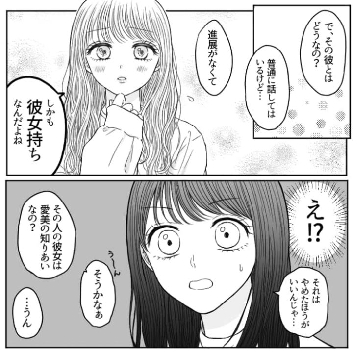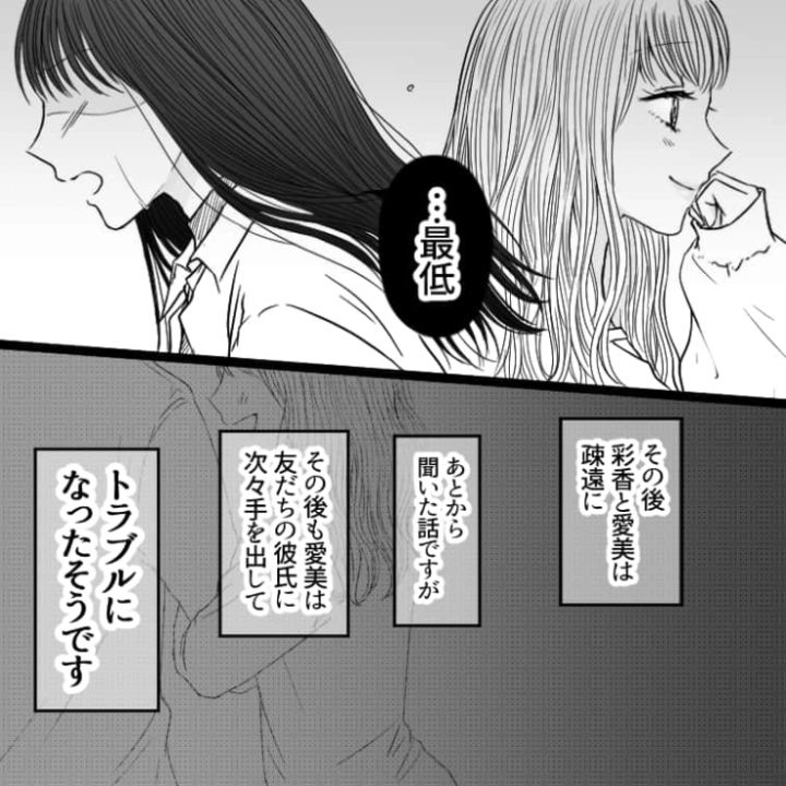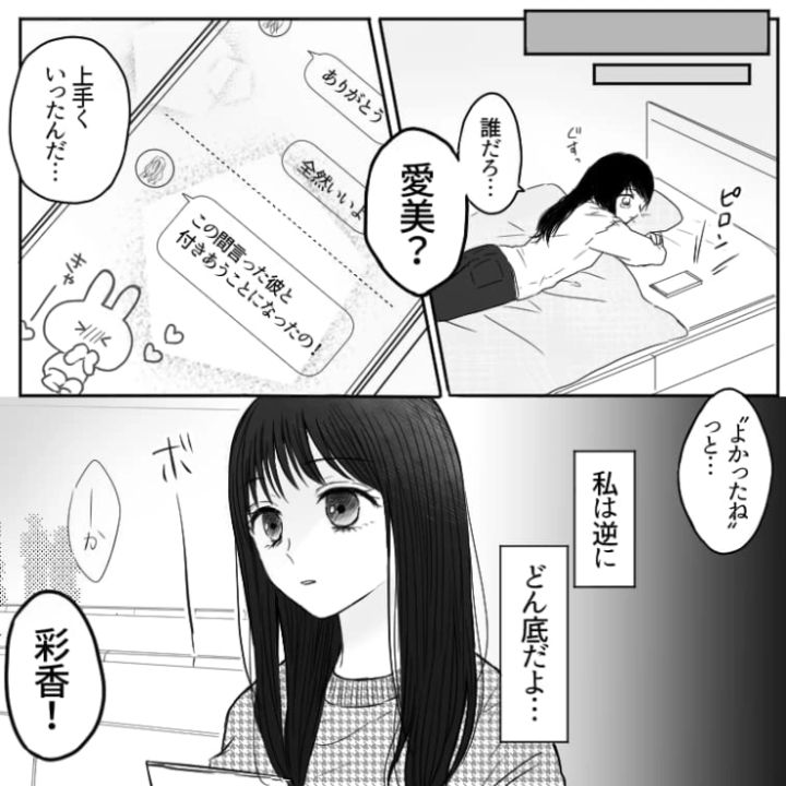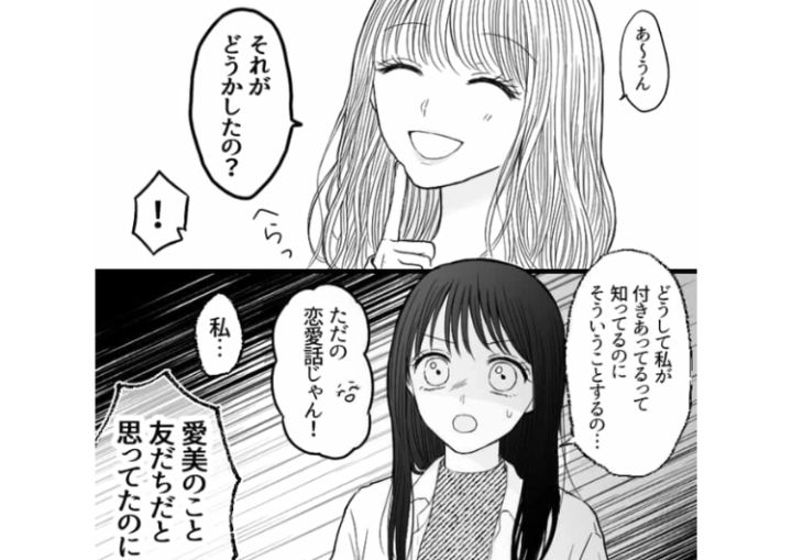 親友に彼氏を取られてしまった主人公。友だちが相談してきた好きな人が自分の彼氏だなんて思わないですよね。彼氏に振られてしまったうえに、親友にも裏切られてしまった主人公のダメージは計り知れません。みなさんも周りにも、友だちの好きな人や彼氏を狙う人はいますか?
