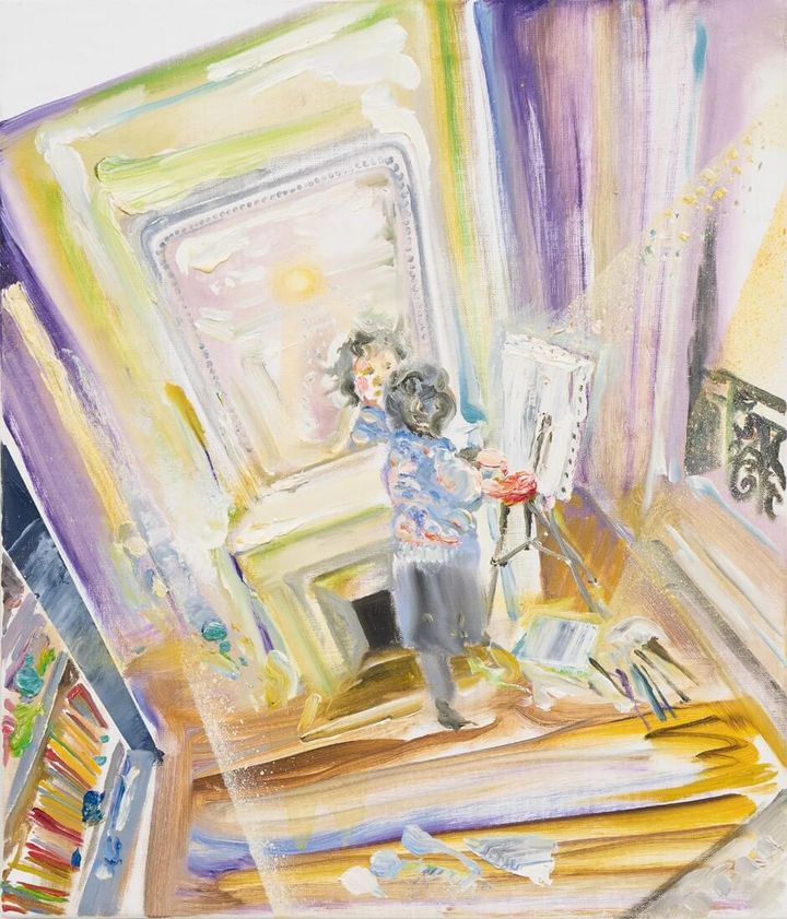 《子供部屋のアトリエ》(2022) キャンバスに油彩、H41xW32cm 撮影:坂本理 © Erina Matsui, Courtesy of ANOMALY