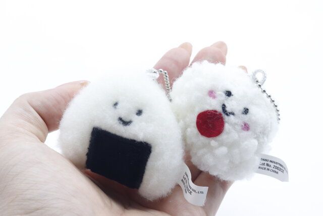 今回GETしたのはこちらの『キーチェーン(おにぎり)』。海苔が巻かれているものと梅干しが付いたデザインがあったので、両方購入しちゃいました♪