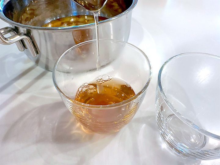5. ゼリーの素を入れて混ぜ、少し冷ましたらお好みの容器に注ぐ。