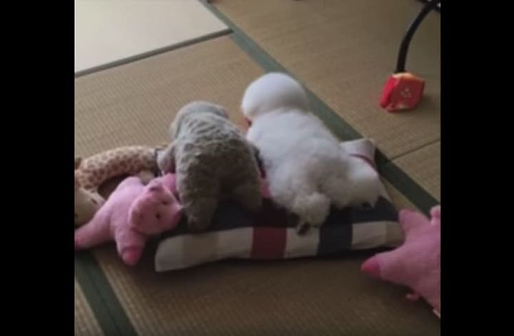 これは萌える。犬のぬいぐるみがふたつ?と思ったら