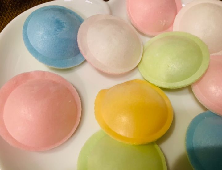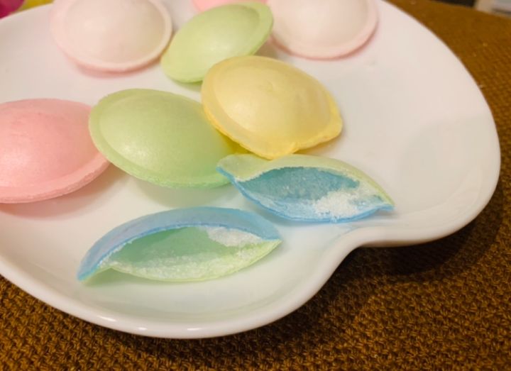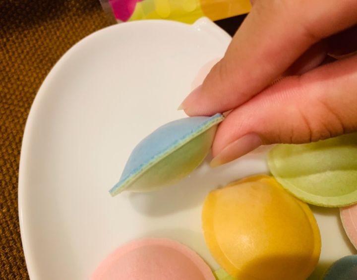 ウエハースをかじると、中からパウダーが口にあふれます!