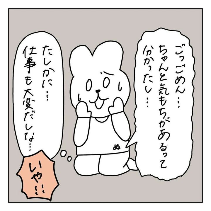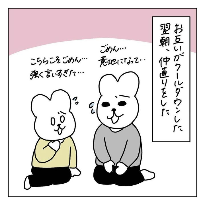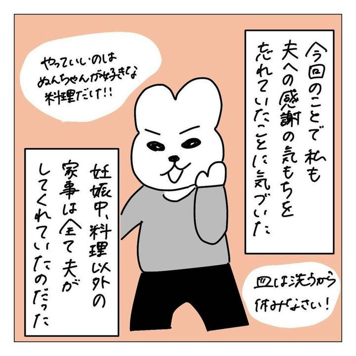 根本的な解決はできなくても、お互いに感謝し合い、期待しすぎないことって大事かもしれませんね。また、今回のぬんさんの夫はもともと家事を受け持ってくれていたのも、クールダウンして話し合えた要因の1つでしょう。