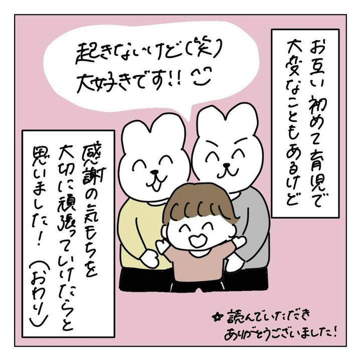 出産後も、家事に育児にやることが尽きない妻。夜泣き中も本当はもっと寝たいのに、わが子を無視するわけにはいかないという状況でしょう。そんな葛藤をしている横でグーグー寝ている夫を見たら「夫には育児の責任がないの?」「どうしてわかってくれない?」という気持ちになるのは当然のことです。一方、ぬんさんの夫には夫なりに、起きられない理由や反省の気持ちがあったようです。