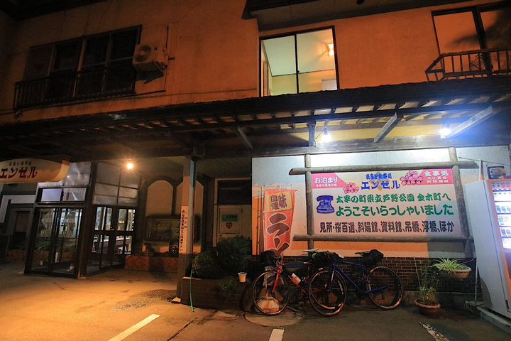 最後は真っ暗な中、駅近くの民宿エンゼルにチェックインしました。ここはかつて地質調査で1週間お世話になった思い出の宿です。調査から帰ってきた後、みんなでお風呂に入り、たらふくご飯を食べた、そんな青春のひとときが蘇ります。