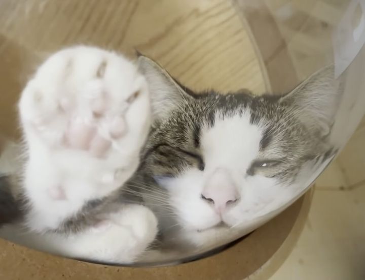 ピンク色の肉球をたくさんみせてくれたオデコちゃん。