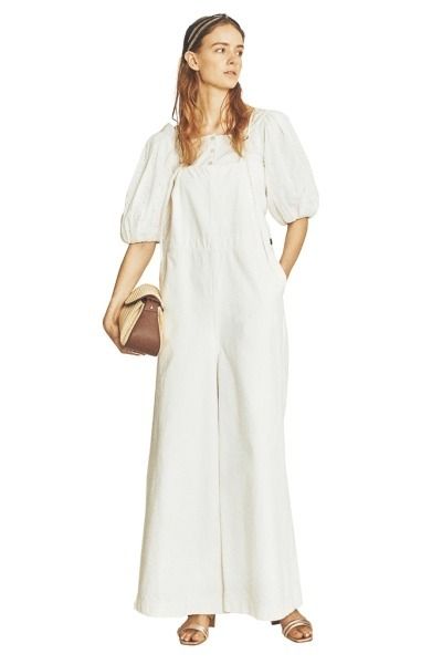 レースブラウス/SLY(バロックジャパンリミテッド) オーバーオール/サクラ(インターリブ) 上半身はコンパクトなサロペットに、ボリュームスリーブが好バランス。ラフなサロペットを軸にすれば、ブラウスの甘さも中和されて、リラックスした印象に。