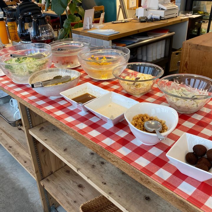 また、嬉しいのがケーキの他に様々なドリンクやサラダ、ペペロンチーノが楽しめるところです🌸