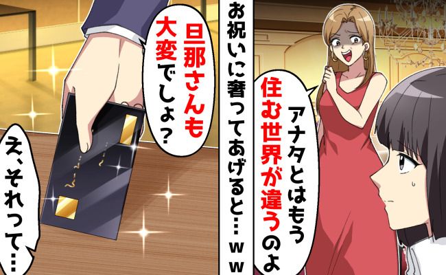 レストランでもA子の自慢話は止まりません。子どもたちは楽しそうに遊んでいたものの、大人たちは罰ゲーム状態。ようやくお会計の時間になり、A子がカードで一括支払いをしようとすると「現在、利用停止になっているようで……」と店員さん。A子が持っていたカードは、夫が利用停止の手続きをとったとのことでした。
