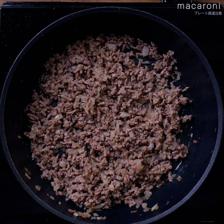 3: 合い挽き肉を加えて、色が変わるまで炒めます。