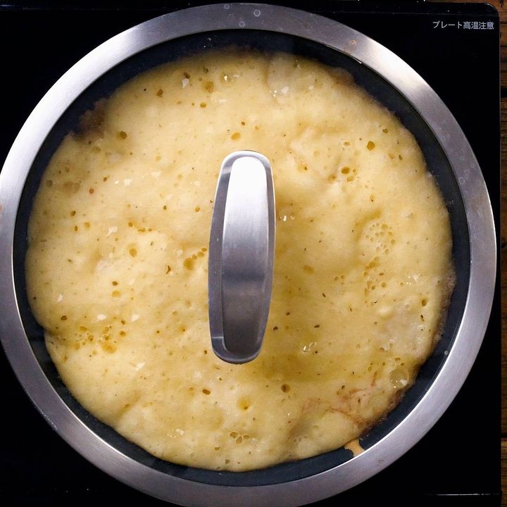 5: ③を流し入れ、フタをして弱火のまま20〜25分ほど焼きます。