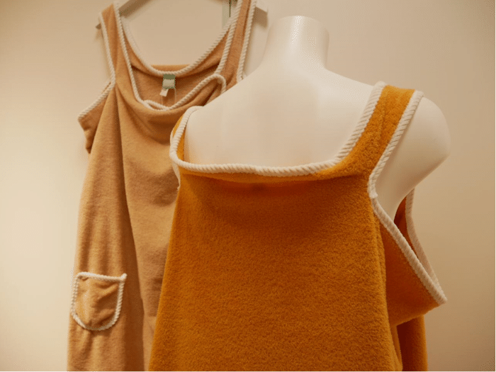 ひとつめは、すでにとっても売れているおすすめのグッズ。SUPxYOGAxFitnessも楽しめるヨガウエアブランド「SPOUT」の「着られるバスタオル」です。