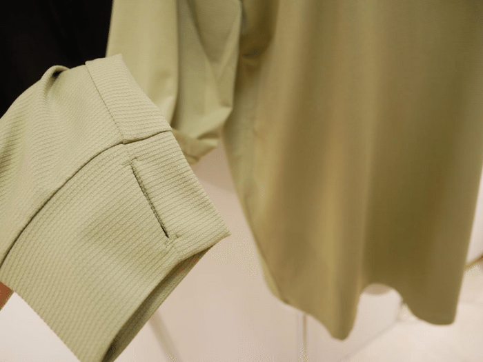 そで口は、手の甲まで隠れるサムホール付き。腕だけでなく手も紫外線カットできる安心感も魅力です。