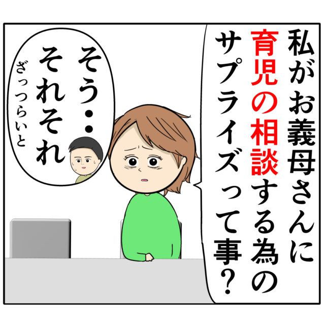 「私がお義母さんに育児の相談する為のサプライズってこと?」