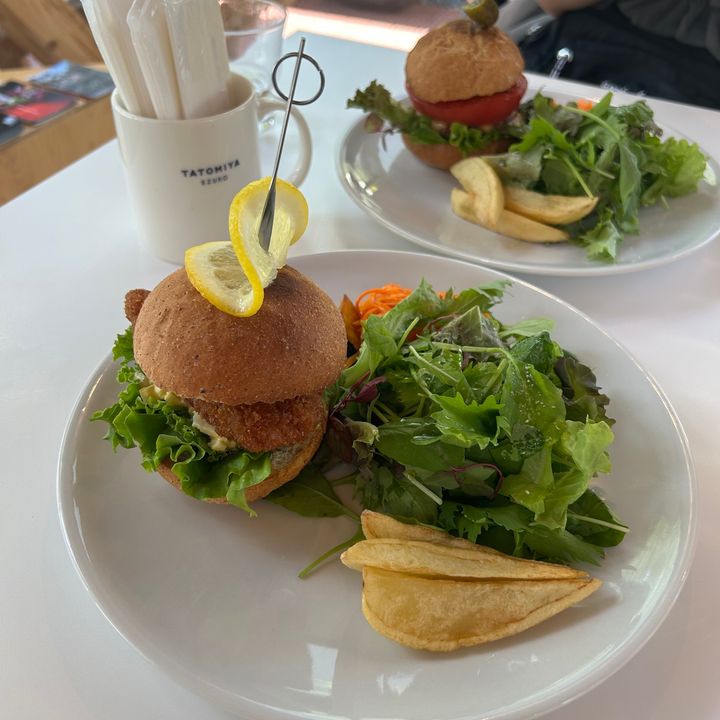 出典:MOREこちらで有名なのがテイクアウトのサンドイッチなのですがランチではこのハンバーガーも人気♡江津湖ハンバーガーとアジフライのハンバーガーをチョイス!パンから手作りということで少しハード系のバンズにサクサクのアジフライが相性抜群!!!そして...