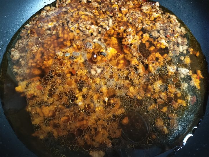 中華料理、特に四川料理のポイントなのが、「豆板醤を油で炒める」という工程です。油で炒めることで香ばしさや辛さをより引き出し、おいしさを倍増させる大事なコツです。そういえばカレーもスパイスを油で炒めることでより香りを引き出しますので、似たような効果があるということでしょうね。