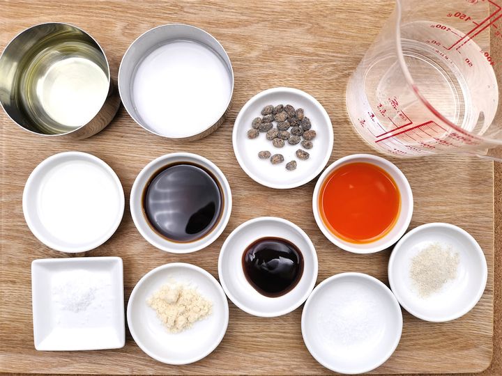 8. 鶏がらスープの素、白こしょう、酒、オイスターソース、しょうゆを加えます。