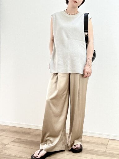 光沢感あるサテンパンツとのワントーンでリラクシーに