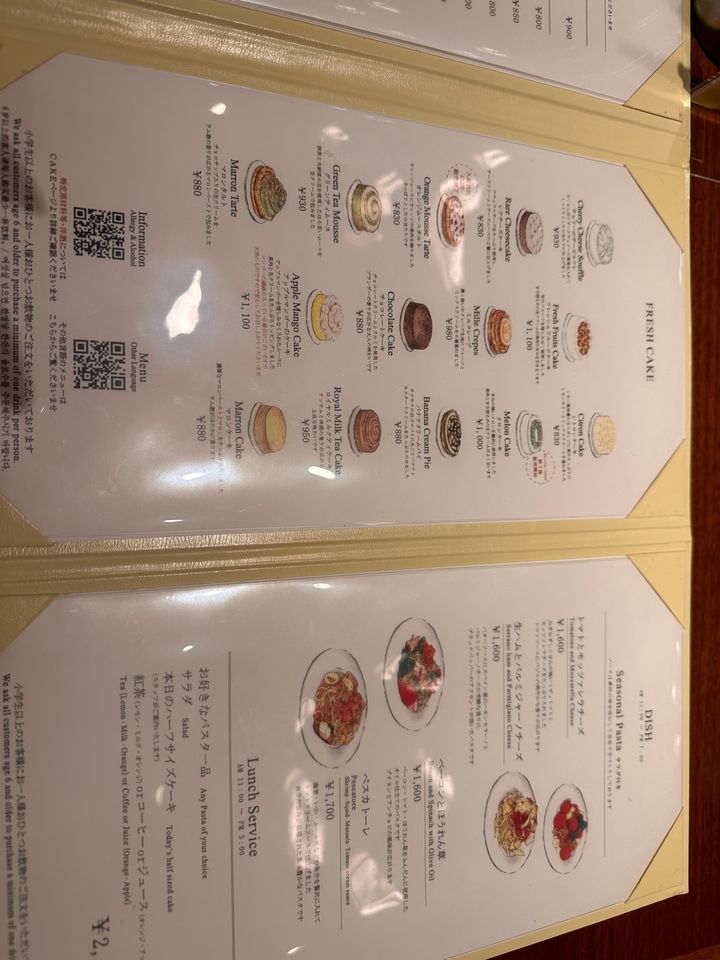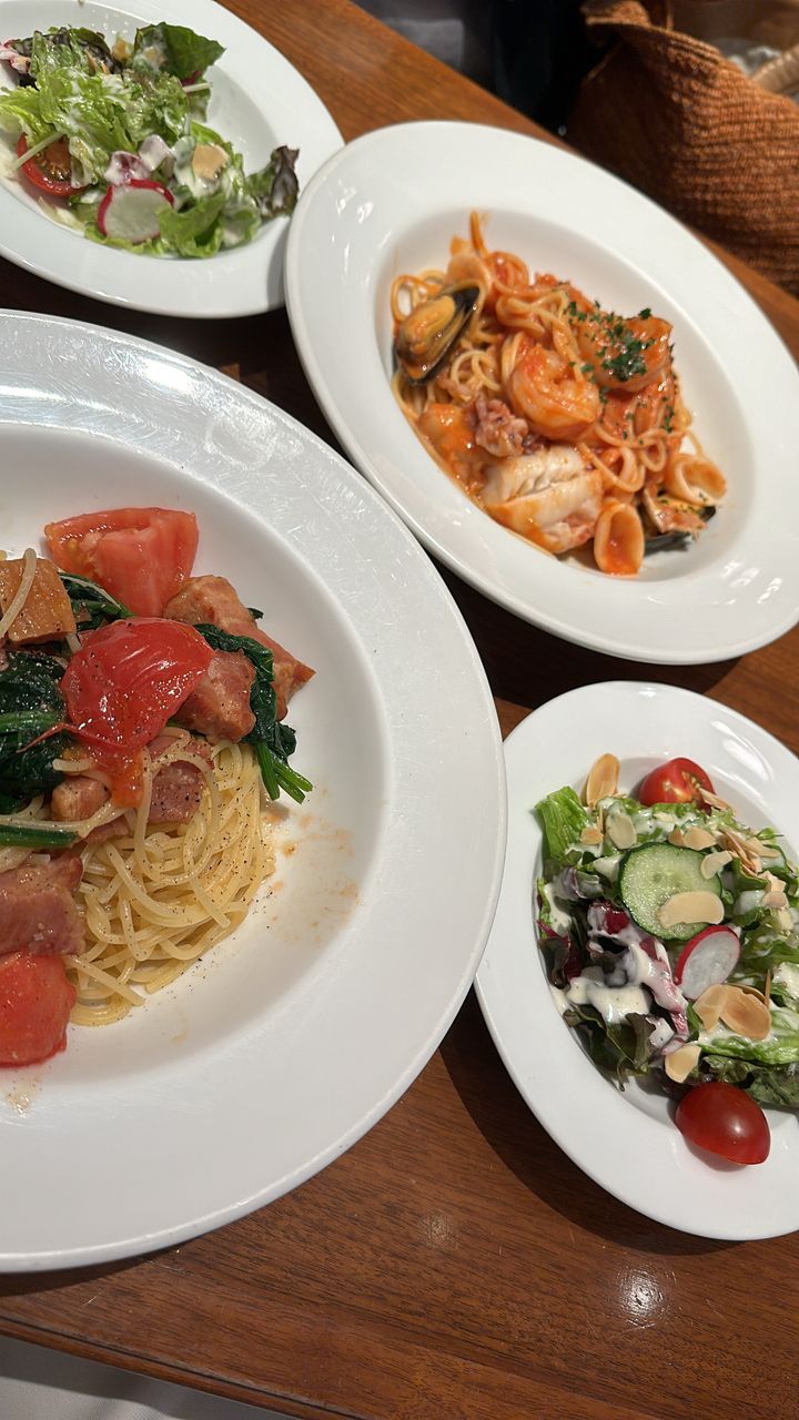 美味しいパスタ数種類にサラダとケーキが付いてくるんです🩷