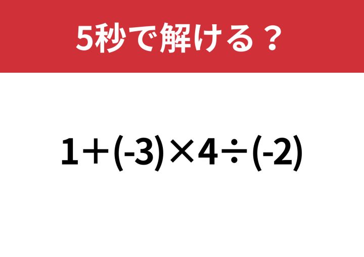 3. 大人なら間違えずに計算して!「1+(-3)×4÷(-2)」5秒で解ける?
