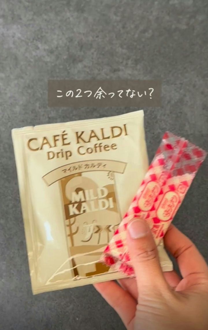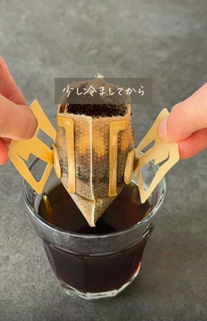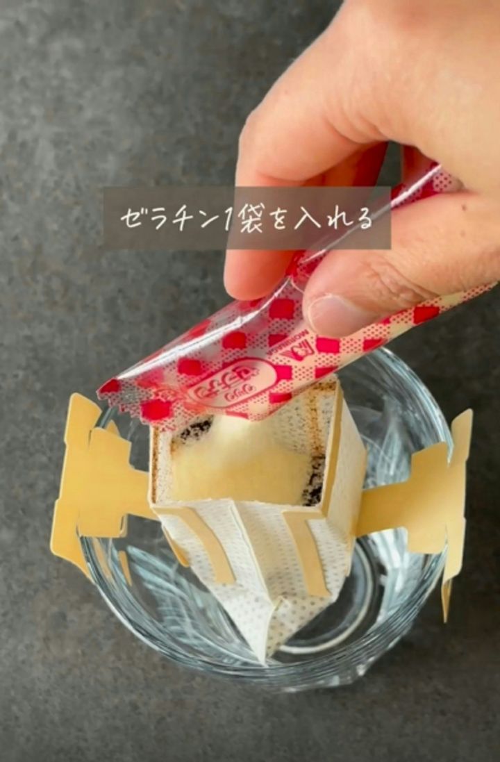 セットしたドリップコーヒーの中に、ゼラチンを1袋入れます。