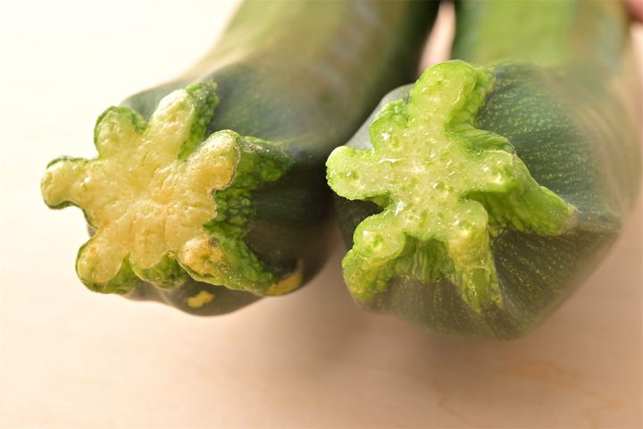 「品種によって、薄緑色から黒に近いような濃い緑色まで色はさまざまです。一概に色で選ぶことはできません。注目してほしいのが、ハリとツヤです。ズッキーニは、成分の90%以上が水分なので、新鮮なズッキーニほど水分たっぷりでハリやツヤがあります。元の色がさまざまなので、色よりもハリやツヤで選ぶのがおすすめです」(高越さん)