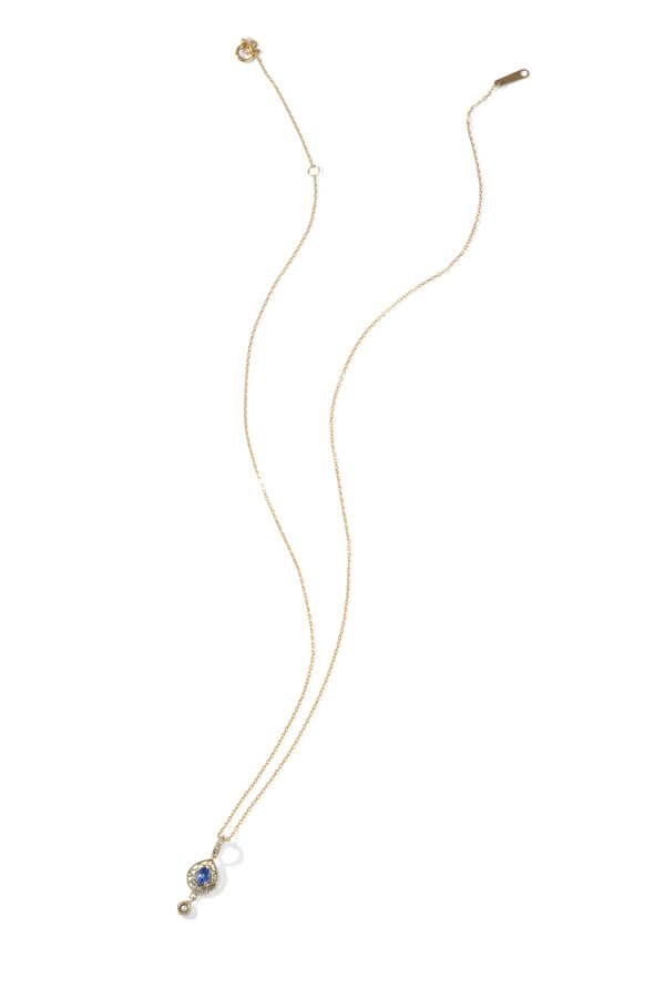ネックレスチェーン[K10YG]¥19,800、チャーム[K10YG×タンザナイト×パール×DIA]¥52,800/ともにアガット