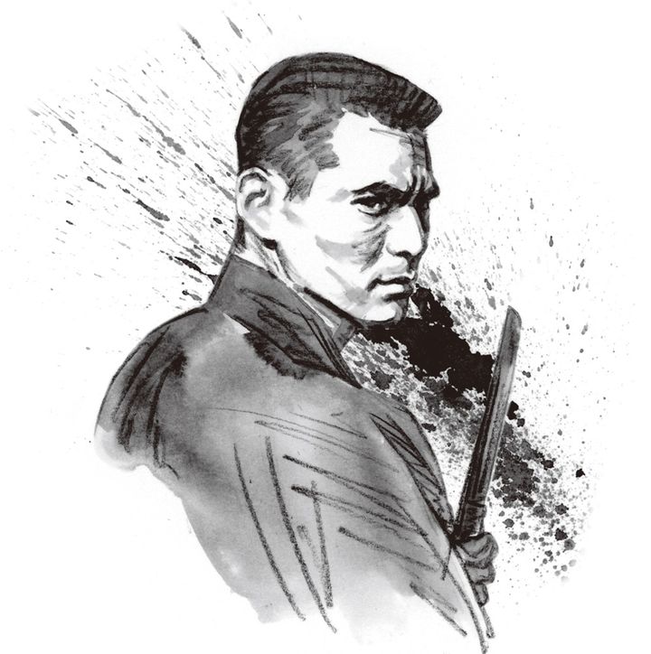 数多くのヤクザ映画に出演した名優。菅原の和に対し、松方はどこか洋の雰囲気を感じさせるダンディな角刈り。「とある広告で、タキシードに角刈りの写真を見たことがあるんですが、それがすごく素敵だった。ハチの外周がきれいに丸いところが好き」