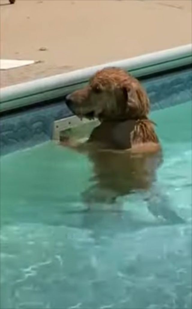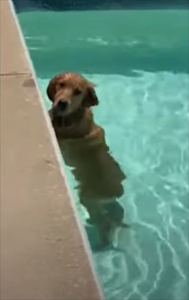 飼い主のロリーさんと一緒にプールに遊びにきたようですが・・・