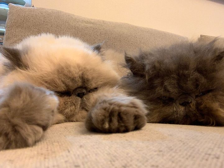 こねこ(右)「お昼寝するときも隣で寝てたぞ。おうちのルールはおにいから全部教わったぞ」ねこ(左)「いまのこねちゃんもかわいいけど、小さいときもかわいかったなぁ」