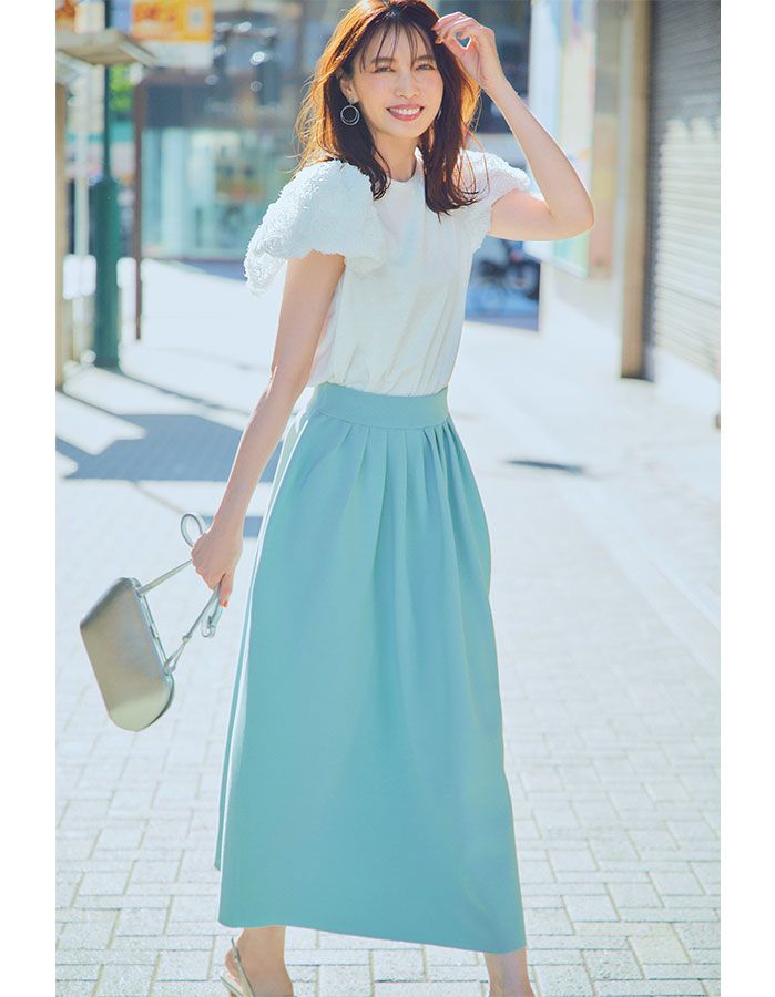 気温が高くなる日は、フリルデザインのTシャツコーデで楽ちん&上品に。ミントグリーンのスカートでさわやかさもプラスすれば、猛暑日も乗り越えられそう! 7月22日(月)のおすすめコーデをご紹介します。