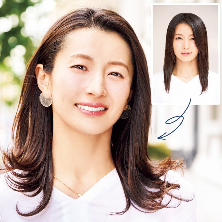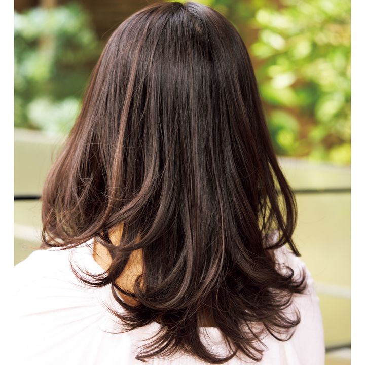 うねりやぼさつき、ツヤのなさなどのエイジング毛は、梅雨や夏の湿気で膨らんでパサつきがち。今どきの地毛風ストレートで髪を扱いやすく、さらに湿気であっという間にアイロン巻きが取れてしまう悩みも一度で解消を。(浅沼さん)
