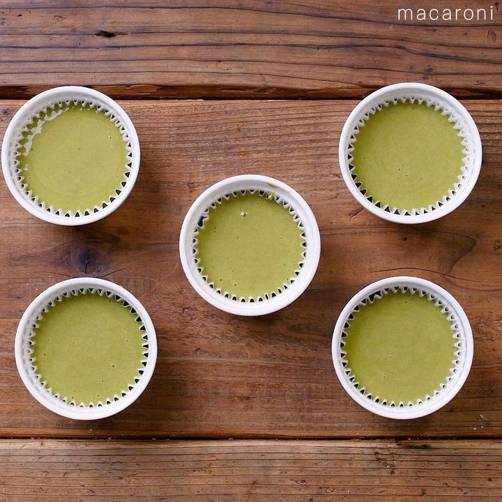 4: 生地をココットに入れたカップケーキ型に均等に流し入れます。