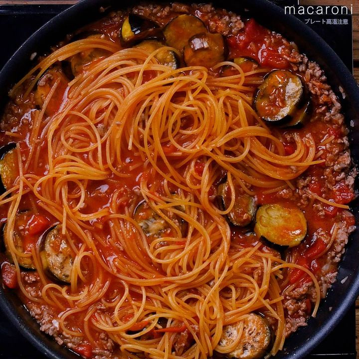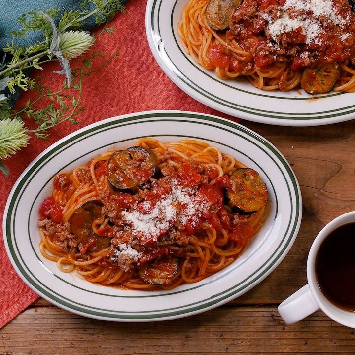 3. フライパンひとつで作る!なすのミートソースパスタ