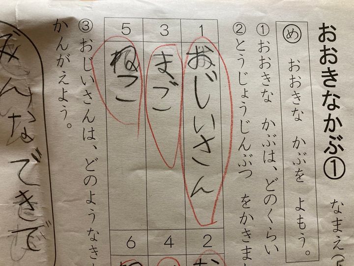 3. 小学1年生の国語の宿題がおもしろい!間違ってない間違ってないけれど…