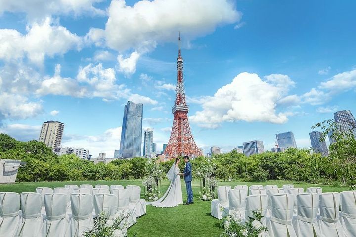 「ザ・プリンス パークタワー東京」は都心にありながら緑に囲まれ、東京タワーを間近に見るロケーションが魅力。都心とは思えないほど開放感のある「プリンス芝公園」でのセレモニーは、列席のゲストの心にも残る特別な体験に。