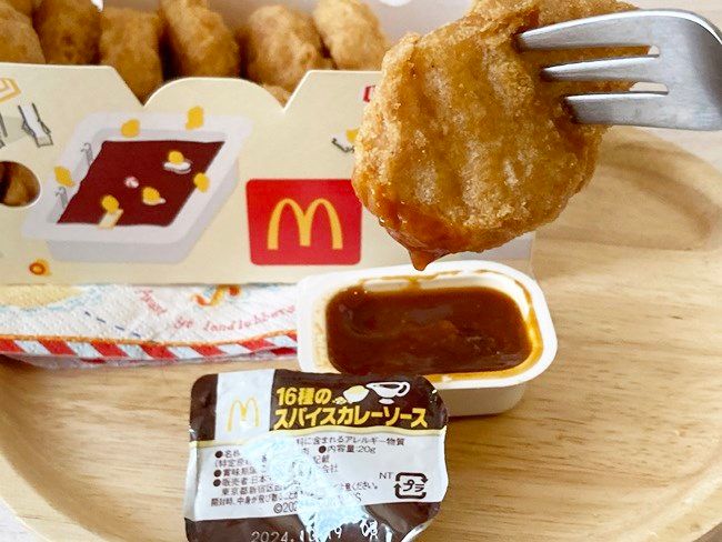 ナゲットにつけて食べてみると、おいしい辛味が口いっぱいに広がります! ご飯にも合いそうな、本格的なカレー味です。唐辛子の辛味もしっかり感じられるので、辛味が苦手な方やお子さまはご注意くださいね。