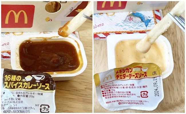 今回の新ソースは「メキシカンチェダーチーズソース」と「16種のスパイスカレーソース」です。気になる新ソースを実食レポします。